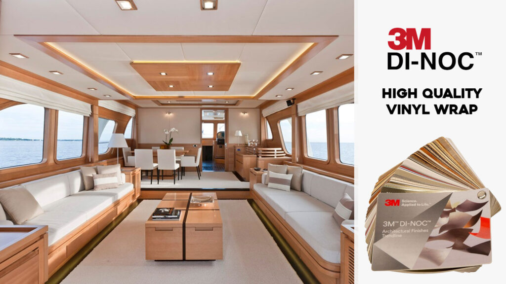 Transform your yacht's spaces with a fresh new look using 3M DI-NOC textured films. Say goodbye to messy, traditional refits and hello to a sleek, modern interior makeover.